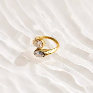 The Ivy Ring is basically your jewelry box’s plot twist ?? two dazzling pear-shaped diamonds wrapped in a golden embrace that curves like destiny itself. It’s giving twin flames meet luxury runway. It’s bold. poetic. and just a little bit dangerous (in the best way).